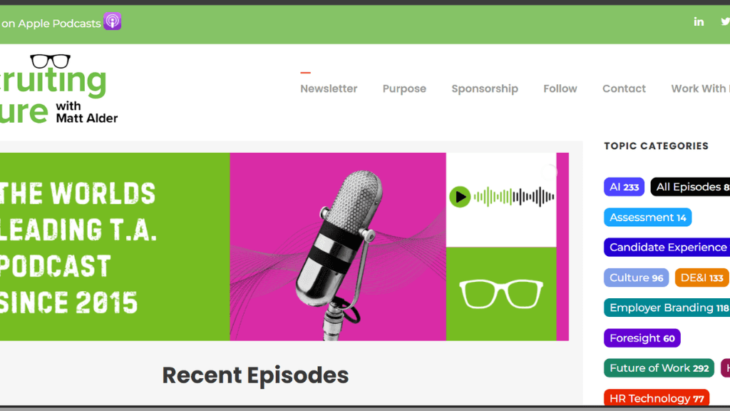 While focused on talent acquisition, Recruiting Future deserves a spot on every HR professional's playlist because hiring doesn't happen in isolation. Host Matt Alder explores what's next for TA, HR, and hiring by interviewing leaders reshaping how organizations attract and retain talent, covering employer branding, candidate experience, and technology transforming the hiring ecosystem.